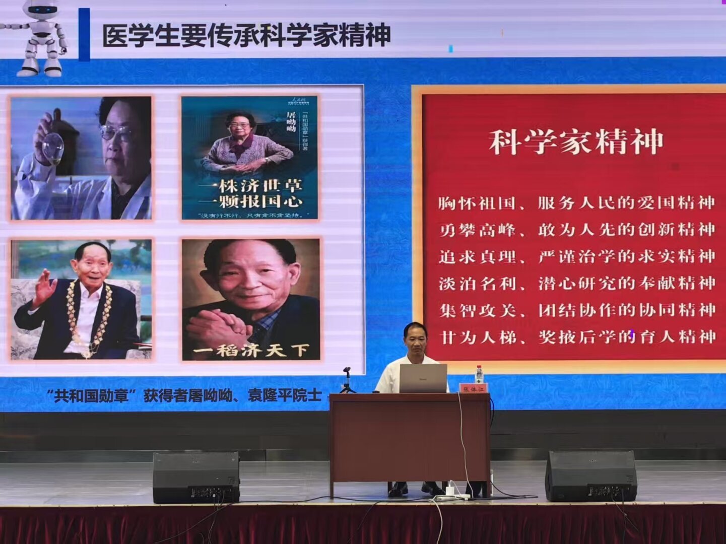 张体江以“传承红色基因,恪守医者仁心——迈好医学求学第一步”为主题开讲